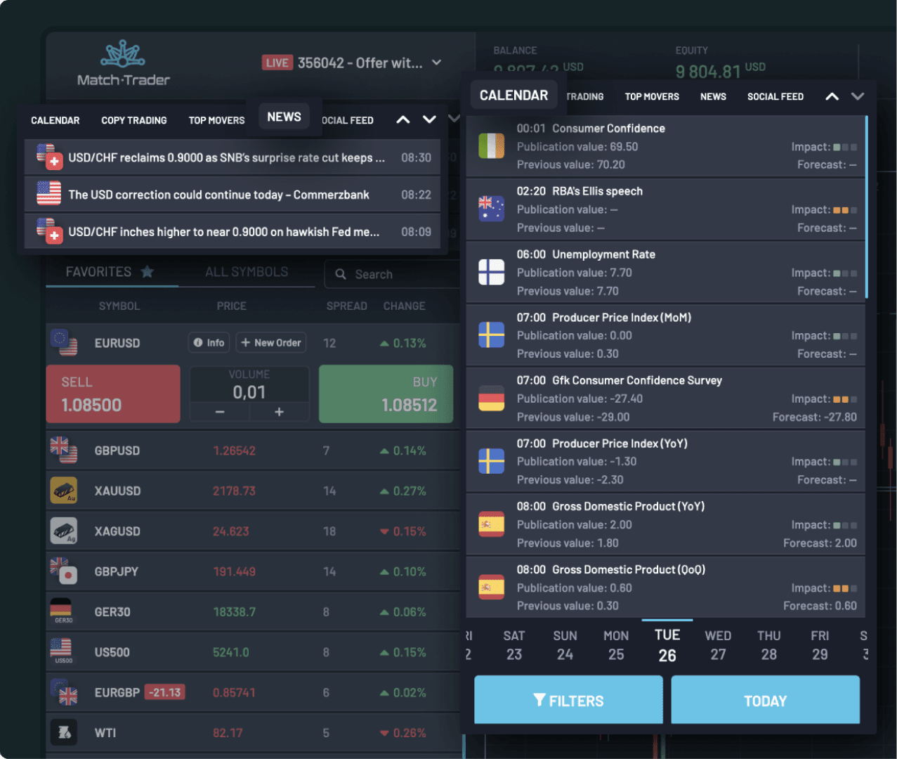 We provides a realistic trading experience using the popular platform Match Trader. You'll be trading in a simulated environment with virtual money, but with access to real-time market data, so you get a true sense of how the markets move.