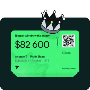 Two Step Challenges: Prove your trading skills - hit the target in Step 1, show consistency Step 2 and get funded! Simple Profit Split: Keep 80% of your profits—fair, transparent and built for your success. Easy withdraws: Secure your earnings quickly with our trusted payment partners. One-time & subscription model: Choose a one-time fee or a subscription—trade on your terms and keep going until you succeed!